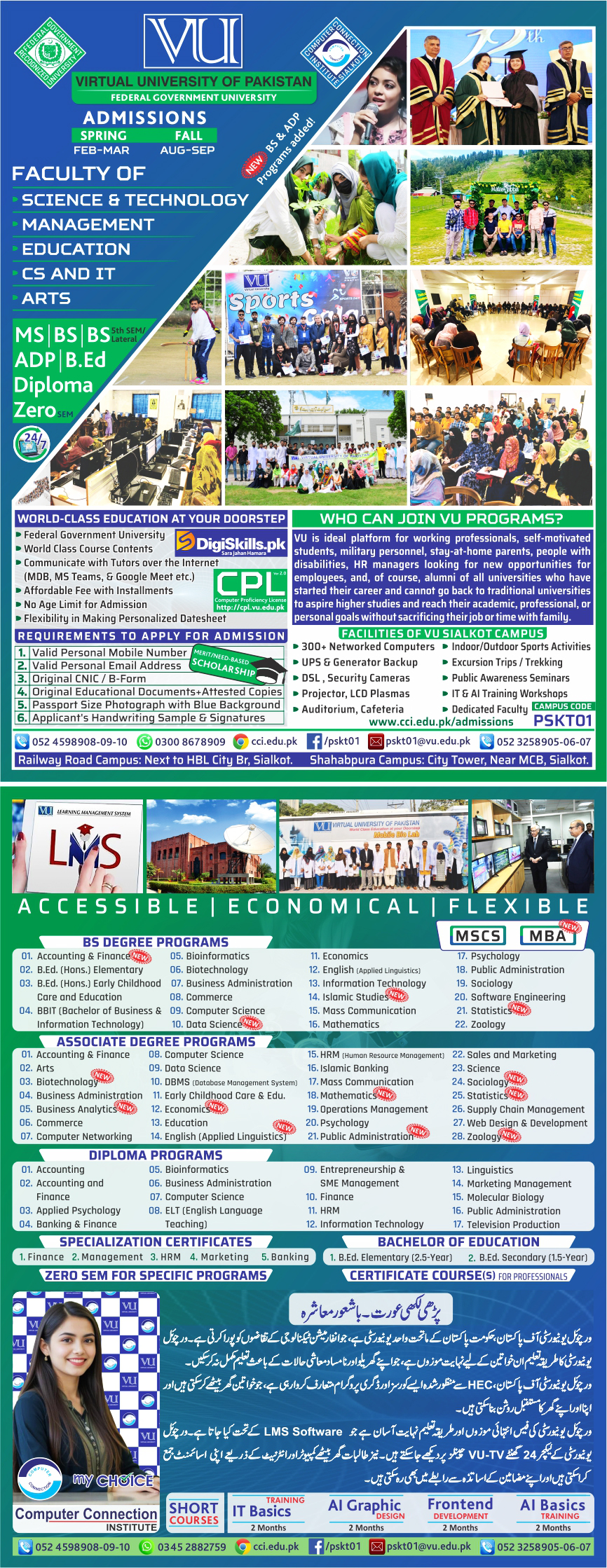 Sialkot Campuses along with Original Educational Documents, CNIC/B-Form, Two Passport size Photographs