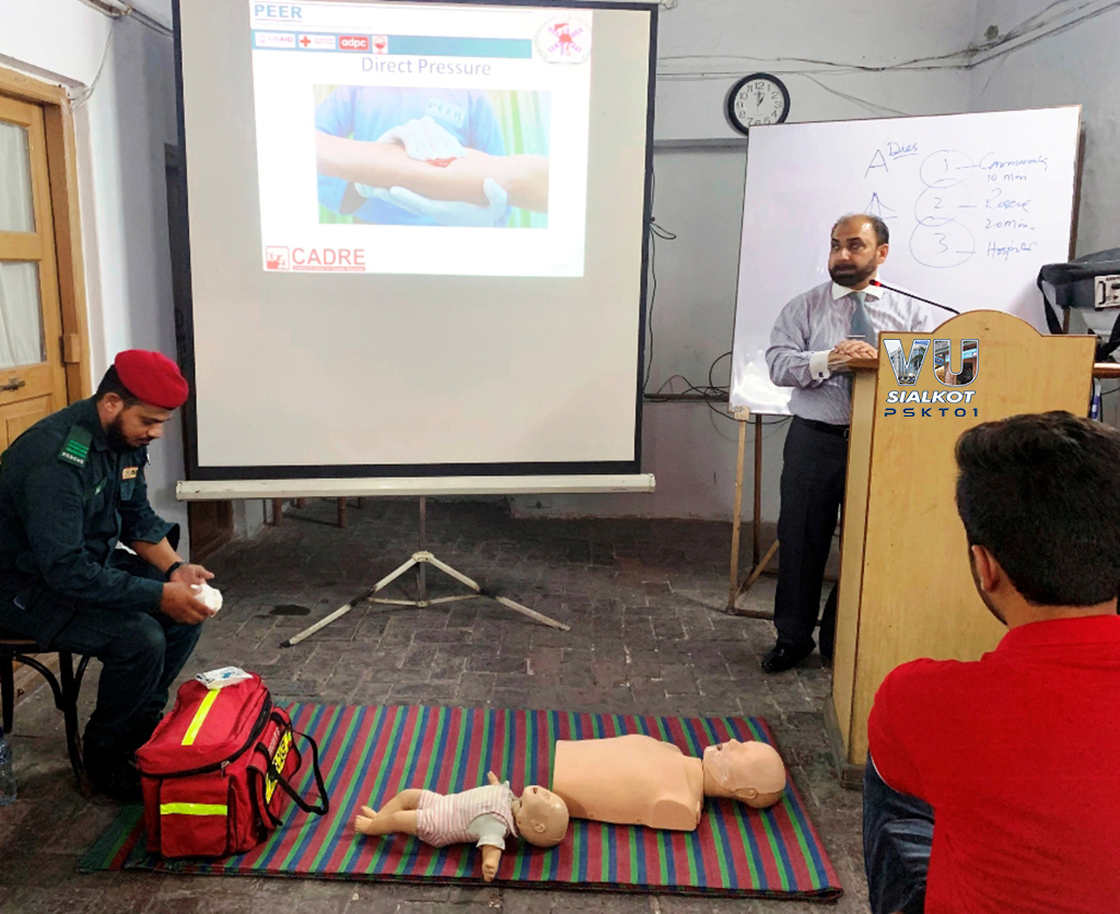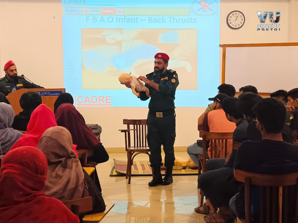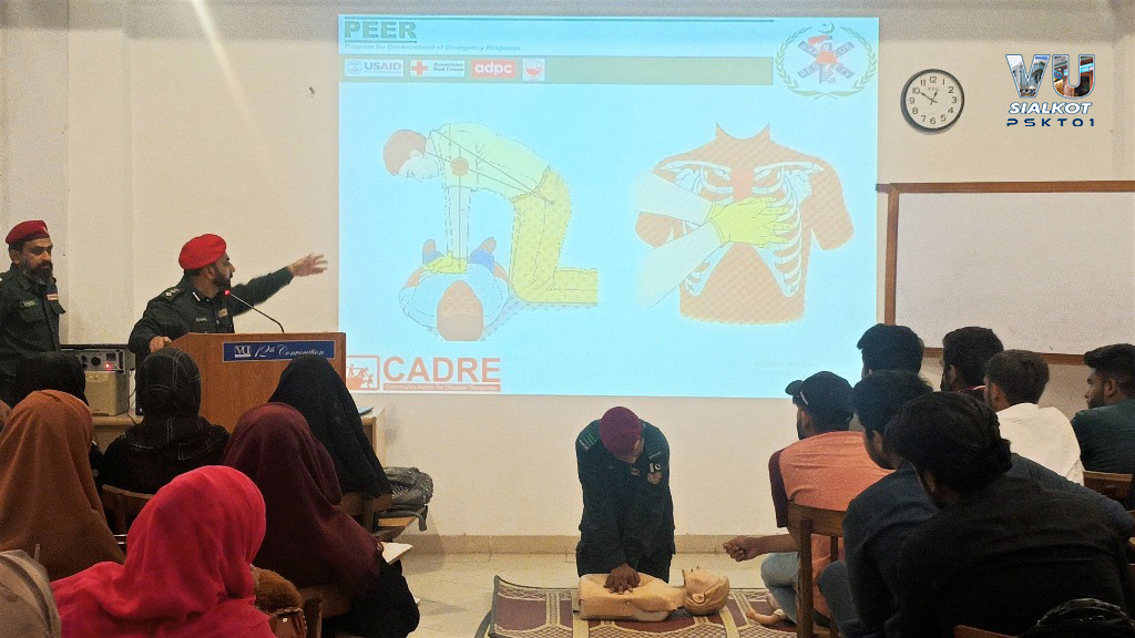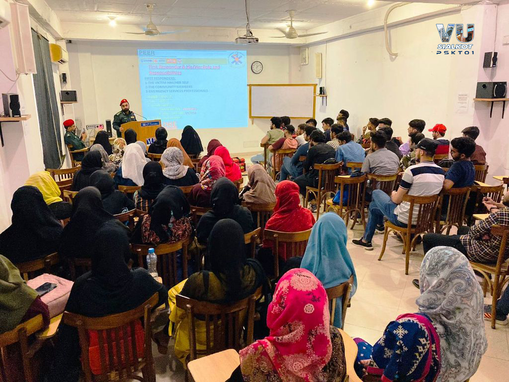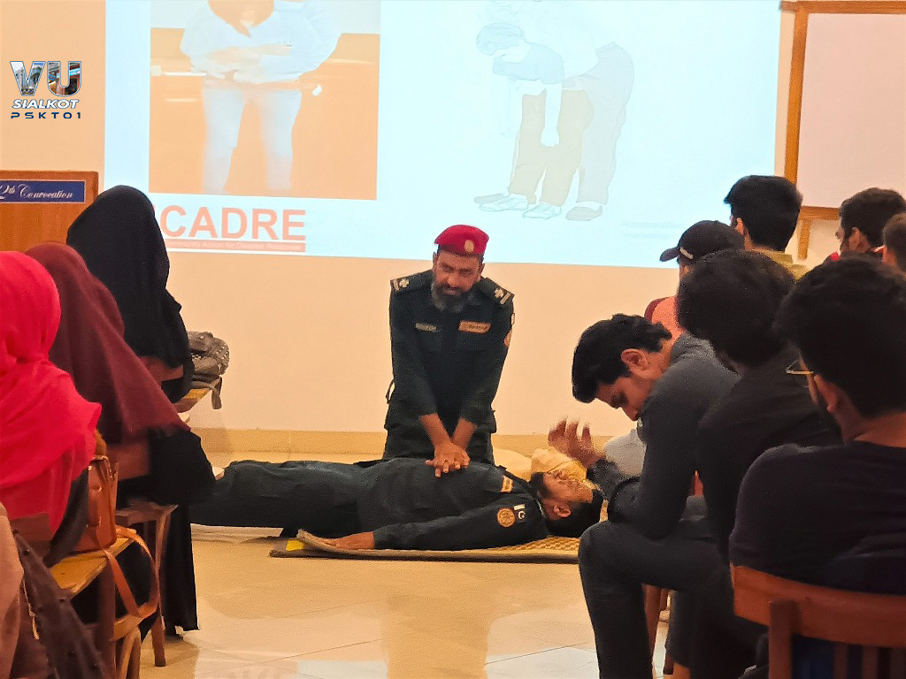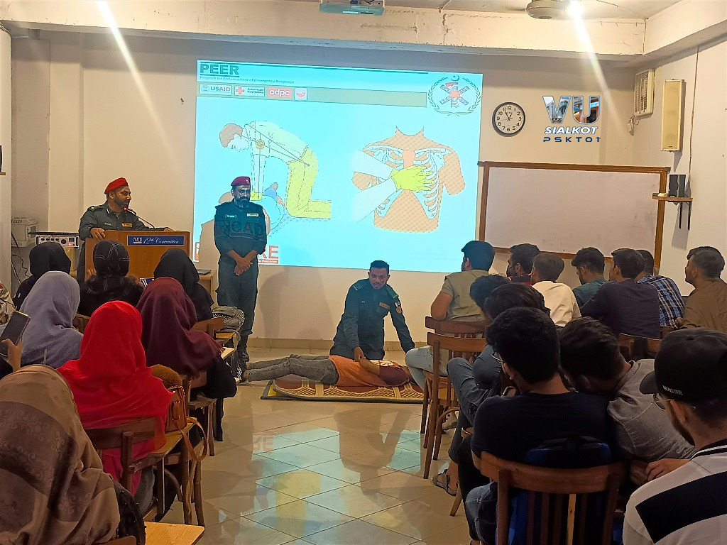 VU Sialkot Campus organized training sessions in collaboration with Rescue 1122 on 29th May, 2023 (at Shahabpura campus) and on 06th June, 2023 (at Railway Road campus). Regional emergency officer, Rescue1122, Syed Kamal Abid Sahib and his team conducted these training sessions. The purpose of these sessions was to raise awareness among students about the significance of being prepared for emergencies and contribute to creating a safer community.
